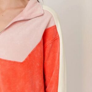 Feel vibrant and stylish in our Color Blocked Half Zip Pullover! This collared pullover features a convenient zipper for easy on and off, while its loose fit provides comfort and flexibility. The bold color blocking adds a touch of modern flair to any outfit. Stand out from the crowd and elevate your wardrobe with this must-have piece! NWT