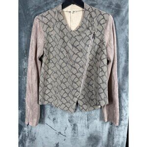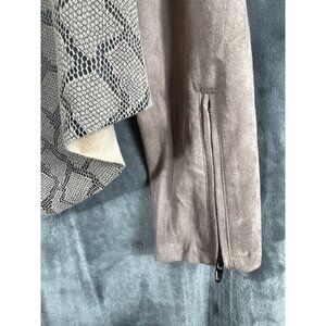 Mystree Womens Faux Suede & Snake Print Jacket With Asymmetrical Zipper - Medium