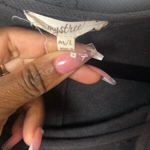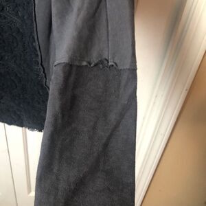 Mystree Womens Floral Embroidery Round Neck Long Sleeve Pullover Tee Black M/L