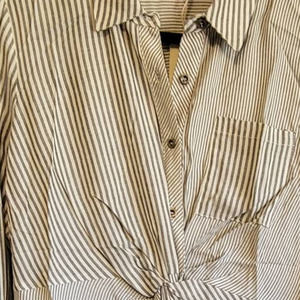Grey White Stripes, silver buttons, pocket on front Top left