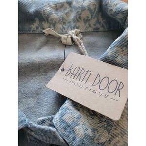 Mystree Women's Blue Moroccan Tile Button Front Denim Jacket Medium NWT