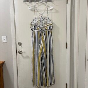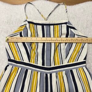 Mystree Yellow Striped Overall Crisscross Open Back Romper Jumpsuit Sz Medium