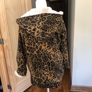 Adorable faux Sherpa lined leopard jacket size medium. Even the hood and sleeves are lined!