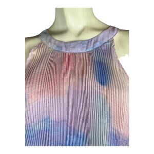 Mystree sz M Micro Pleated Pastel Watercolor Top Blouse Shirt