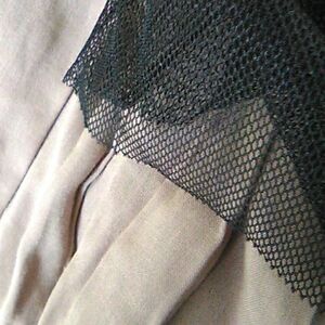 This is the cutest dress. lace over nude lining. The lace is trimmed is ruffled net. The lining is trimmed in a deep ruffle that shows beneath. No size tag, measures 51 at chest, 36 at waist, 40 at hips, 34 long from shoulder to hem. This would be a great look with leggings and boots or with sandals in warm weather.