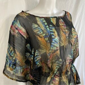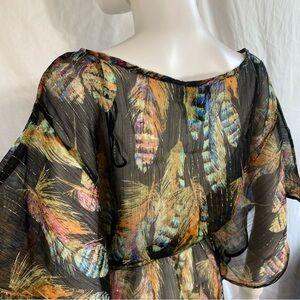 Myth NYC Sheer Feather Print Boho Style Blouse