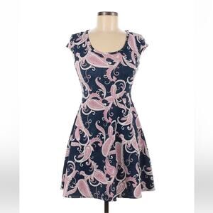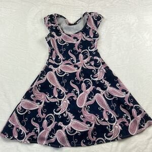 Myth dress in a fit and flare silhouette with scoop neck and short sleeves. Pullover, with ample stretch and no zippers. Does not have pockets. There is no size or fabric tag, so listed as a small from measurements. Please double check!