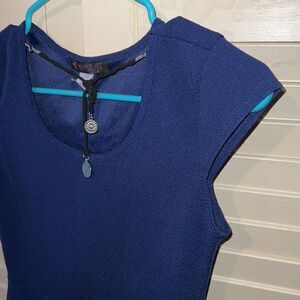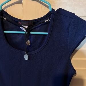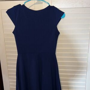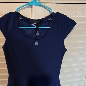 Myth size medium mini dress with full circle skirt, so lightweight and comfortable to wear with lots of all over stretch, short sleeves, choker can be removed from the dress