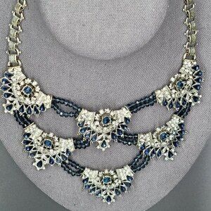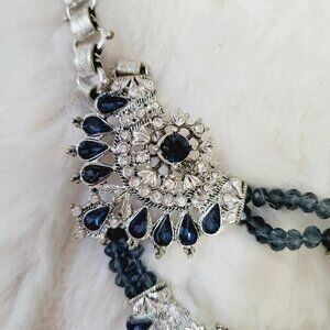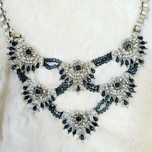 Mythologie Crystal Bib Collar Statement Necklace Sapphire & Crystal Colored