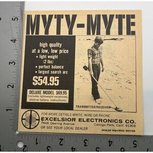 Myty Myte Metal Detector Print Ad Vintage 70s Locating Excelsior Electronics Canoga Park CA