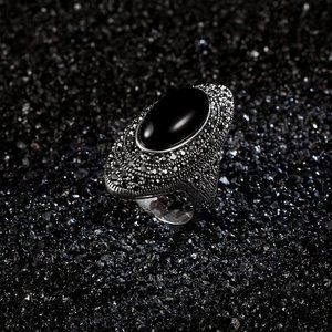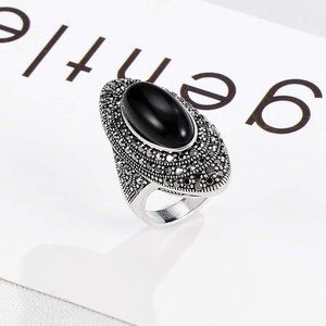 Ring Feature: vintage style a lot of black marcasital crystal with a big black oval crystal imitation stone.
