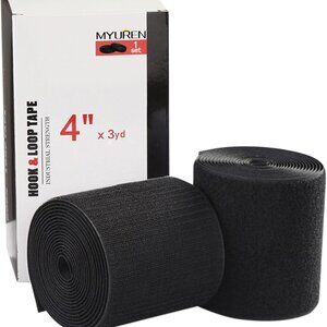 Myuren Hook & Loop Tape Black Sew On 4" x 3yd Industrial Strength 1 set NIB