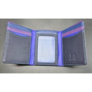 Mywalit Trifold Leather Wallet For Men Blue with Purple Trim Card and ID CT704