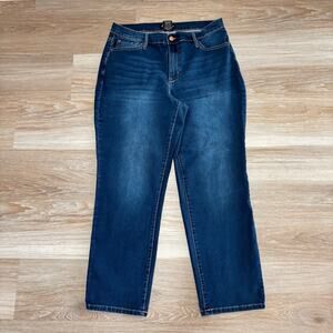 Style: "Belle" High Rise Slim Straight Leg Denim