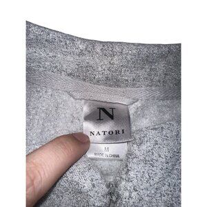 N Natori Gray Lounger Robe Sz M Rayon Blend Soft Brushed Terry 1/2 Zip Pockets