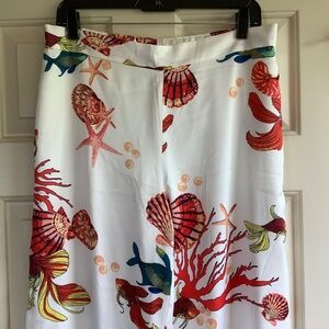 N Natori Under The Sea Pull On Wide Leg Pant Coral Multi SZ M