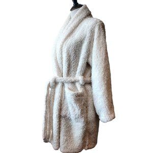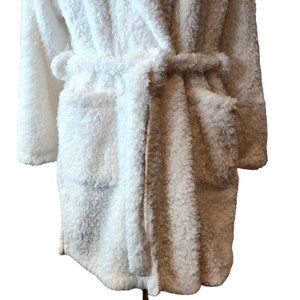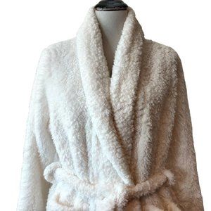 N Natori Womens Size L/XL White Teddy Bear Tie Belt Pockets Cozy Lounge Robe