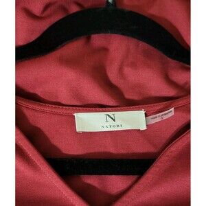 N. Natori Womens Tunic Top Colorblock Knit- Faux Leather Trim Long Sleeve S NWT
