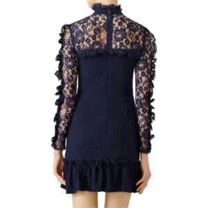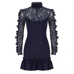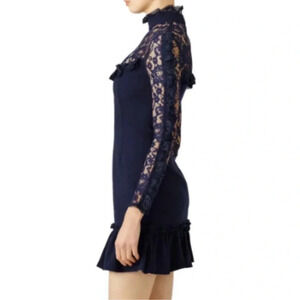 N/ Nicholas Navy Lace Insert Long Sleeve Mini Dress Size 2