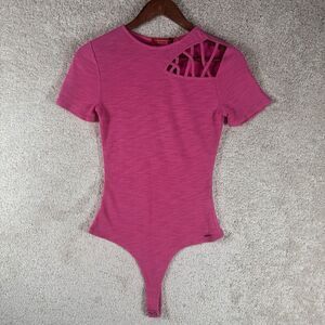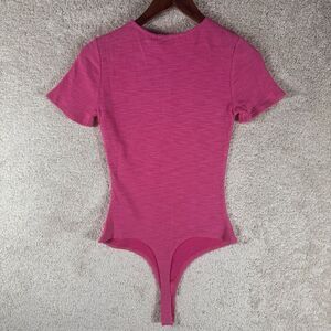 N Philanthropy Irene Bodysuit NWT Small Pink Ribbed Cutout Short Sleeve Crew