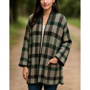 N TOUCH Women's Size 3X Green Black Plaid Duster Long Sweater Open Front Coat