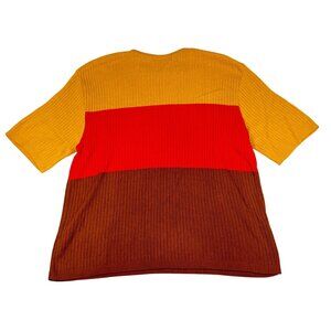 N Touch Colorblock Knit Sweater Top Acrylic Ribbed Stripes Red/Orange/Brown Sz L