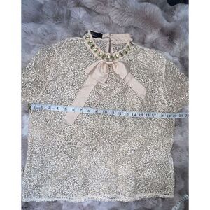 N by Nancy Women's Fishnet Sheer Lace Champagne Collar Crystals, Size XL. Condition is Pre-owned. Shipped with USPS Ground Advantage.