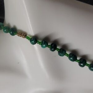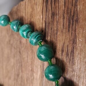 N1205 Green Malachite Bead Yellow Gold tone Clasp Graduated Vintage Necklace