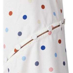 White and rainbow polka dot printed poly (98% Polyester, 2% Spandex). Skirt. Hidden side seam zipper closure. Asymmetric hemline. 20" from waist to shortest hemline. 32" from waist to longest hemline. Imported.