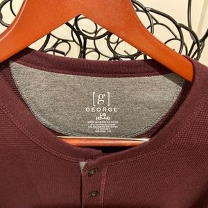 N1-BUNDLE ONLY-Men's Burgundy Waffle Knit Three Button Long Sleeve Shirt