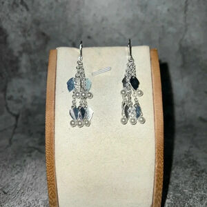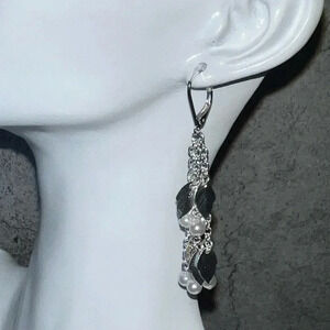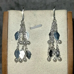 THIS LISITING IS FOR A PAIR OF MODERN PREMIER DESIGN DANGLE EARRINGS WITH FAUX PEARL AND LEAVES ACCENTS. SILVER TONE IN COLOR. 1.75” DANGLE