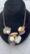 Unique necklace with chunky multicolor stones. Features white, cream, and brown tones.