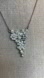 The pendant is 2” long in a gorgeous triangular cluster of crystals which trail down her décolleté. Some crystals form a flower shape and others, the Rivoli crystals, are beautifully faceted to twinkle on movement!
