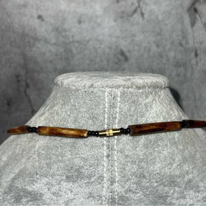 THIS LISTING IS FOR THE VINTAGE BOHO BONE NECKLACE REAL BONE CYLINDER BEADS, BRONZE BARREL CLOSURE. ARROW, CYLINDER, BLACK BEADS.