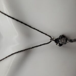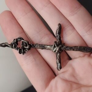 N2837 antique sterling silver solid cross necklace w solid silver chain