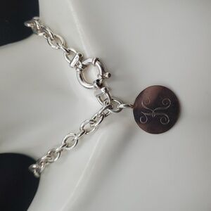 N2911 sterling silver toggle chain initial K monogram customized necklace estate