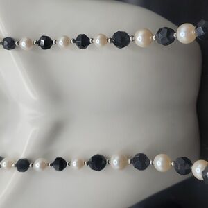 N3036 black and white ice beaded facet fifth Avenue necklace