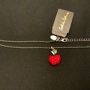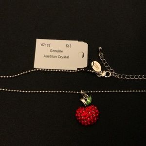 N4/ NWT 18” Cookie Lee Necklace - Red Australian Crystal Apple on Silver Chain