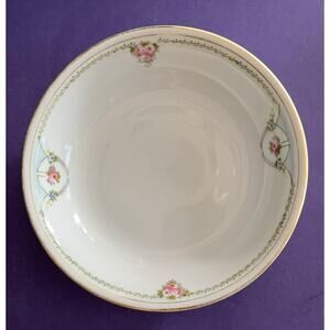 N41 Noritake Fruit Dessert Sauce Bowl Pink Roses Blue Triangle Green Leaf Border