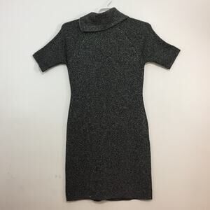 Calvin Klein Fold Over Zip Collar Sweater Dress Size M Metallic Glitter Black