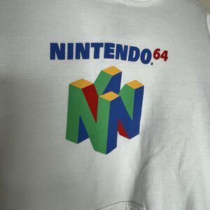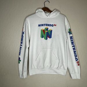 N64 Nintendo 64 White Hooded Pullover Hoodie Sweatshirt Size Small FLAW