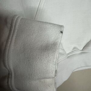 The hoodie has been machine washed according to instructions, but there are stains that wouldnt come out on the sleeves. Please see photos. No rips or tears.