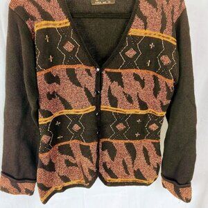 N8tive Nits 90's Y2k Zebra Pint Gold Black Sweater Women's Medium.
