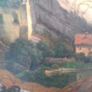Item Sold>>>> 17"x 23.5" >> N/A << 19th Century Oil on unlined canvas. Entourage of Jean Joseph Xavier Bidauld (1758-1846). ?Or Robert Seldon Duncanson (1821 - 1872)? Original 19th Century, is not a giclee print nor copy of another work. Landscape with Castle, 24"x 30" including 18th Century Gilt Frame (Italian or French) Photos enclosed before and after cleaning, has always been kept in a smoke free, climate controlled home. Remnants of a Signature at bottom right were lost during conservation. Happy Holidays
