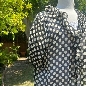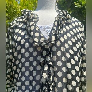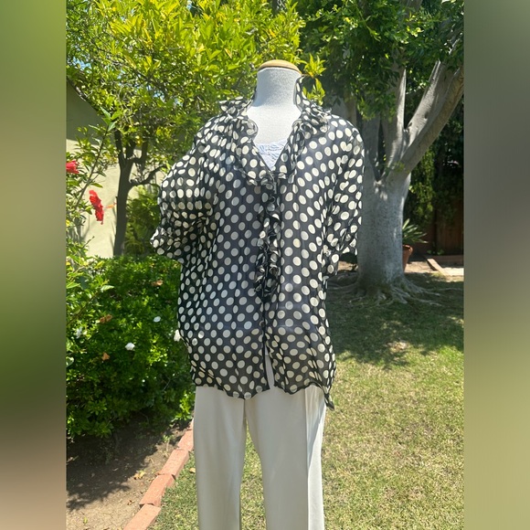 No brand attached to this blouse. Has some damage and one stained ( check picture ) . Raffles on the front and around the neck