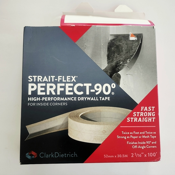 Strait flex drywall tape. New, open box. Strait-Flex Perfect-90 high-performance drywall tape for inside corners. Features fast and strong application.