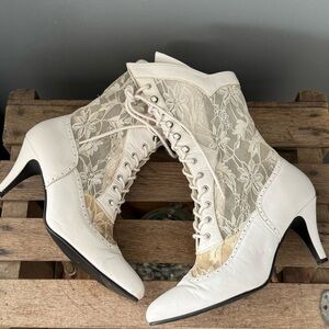 These boots are in good preowned condition. Women’s size 6 1/2, the heel measures approximately 3 inches. Please zoom in on all photos as they are in vintage condition.