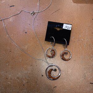 NA HOKU WAVE STERLING SILVER .925 LEVERBACK EARRINGS & PENDANT SET WITH A RING