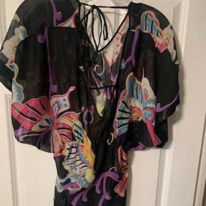 Sheer butterfly top with tie closure around back of neck