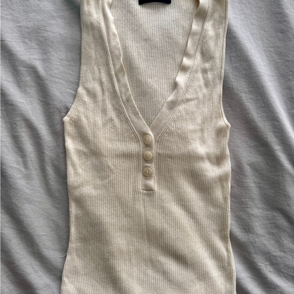 Elegant ribbed tank with button accents. Perfect for layering or solo wear.